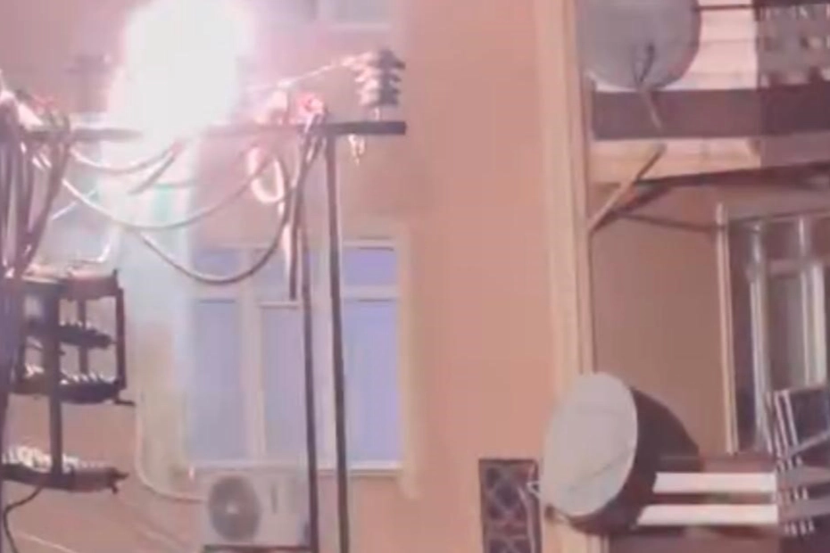Kocaeli'nin İzmit ilçesinde elektrik trafosu, patlamanın ardından alev aldı. O anlar saniye saniye vatandaş kamerasına yansıdı.