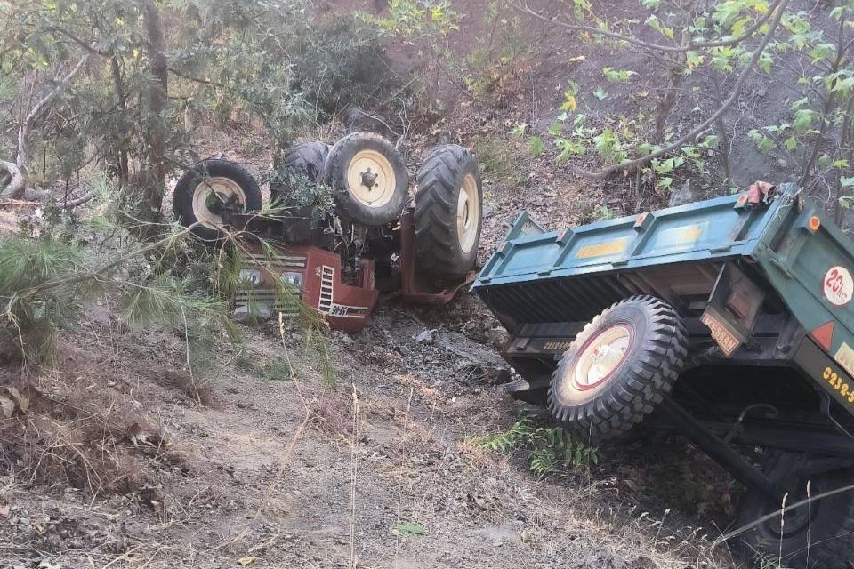 Manisa'nın Akhisar ilçesinde meydana gelen traktör kazasında Mehmet Gencer hayatını kaybederken, torunu ağır yaralandı.