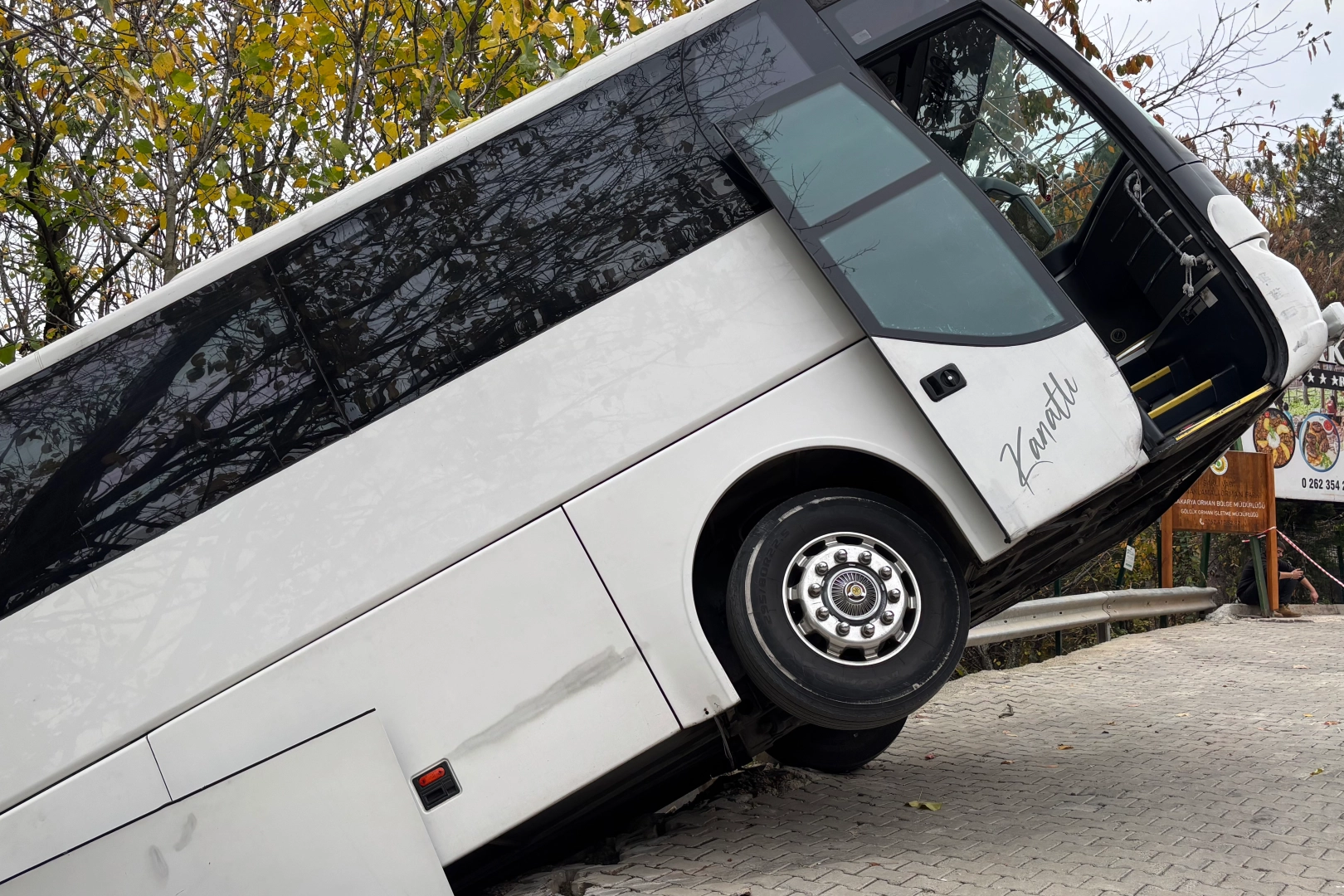 Kocaeli'nin Kartepe ilçesinde park halindeyken hareket eden tur otobüsü bariyeri aşıp şarampole düştü.