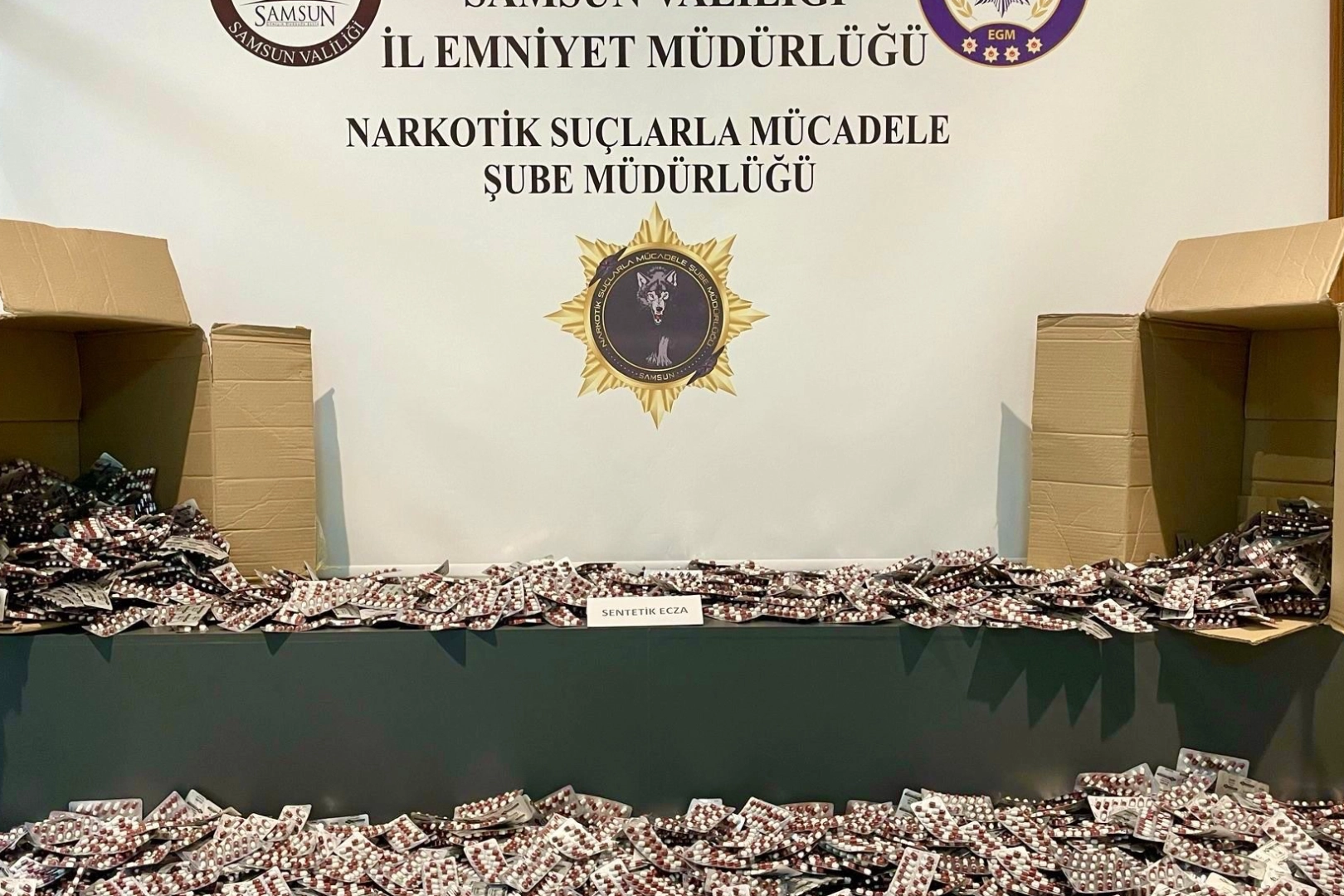 Samsun’da polis ekiplerinin düzenlediği operasyonda bir evin gardırobuna gizlenmiş koliler içinde 47 bin 824 adet sentetik ecza ele geçirildi.