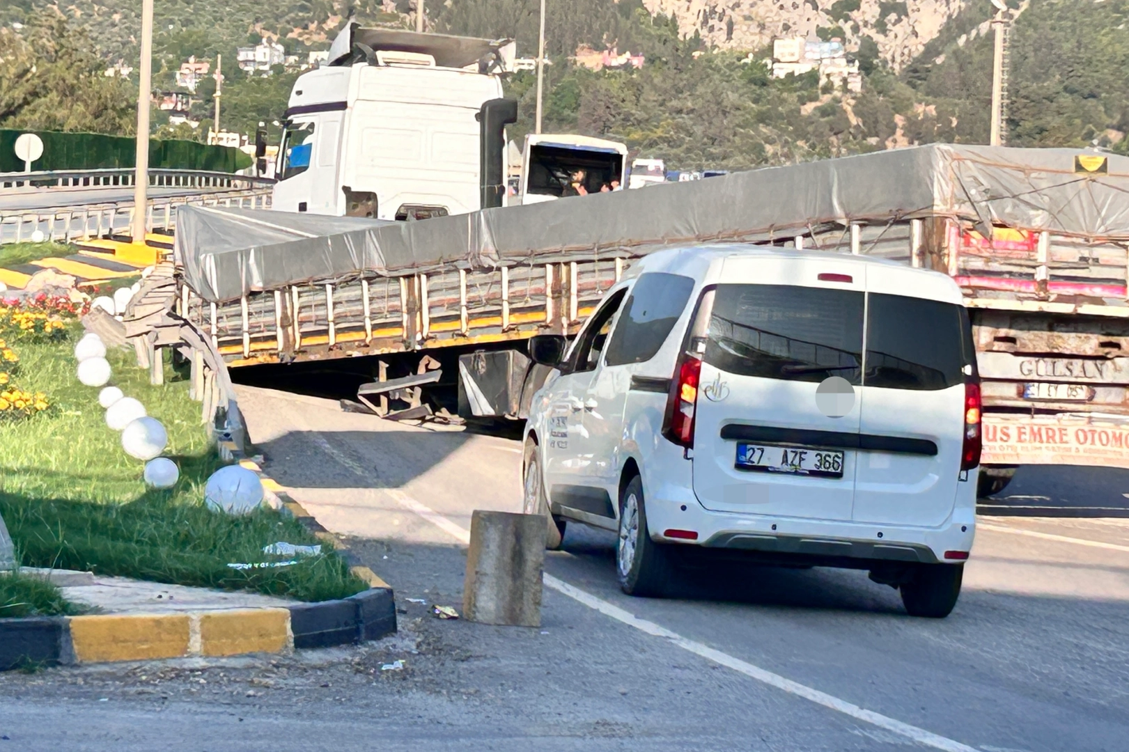 Yaralanmanın yaşanmadığı kazada, dorse çekici yardımıyla kaldırıldı.