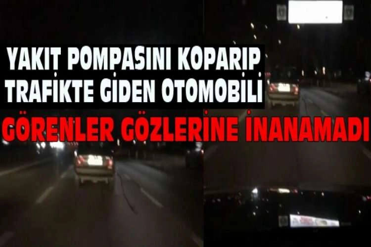 Olay, merkez Osmangazi ilçesi Acemler Köprüsü yakınlarında kameralara yakalandı. Bir sürücü akaryakıt aldığı istasyonda yakıt pompası kopartıp aracıyla harekete geçti. Yakıt pompasıyla hiçbir şeye aldırış etmeden trafikte ilerleyen sürücü başka sürücüler tarafından kaydedildi. Yerde sürüklenen pompanın kablosuyla seyreden otomobili gören diğer sürücüler gözlerine inanamadı.