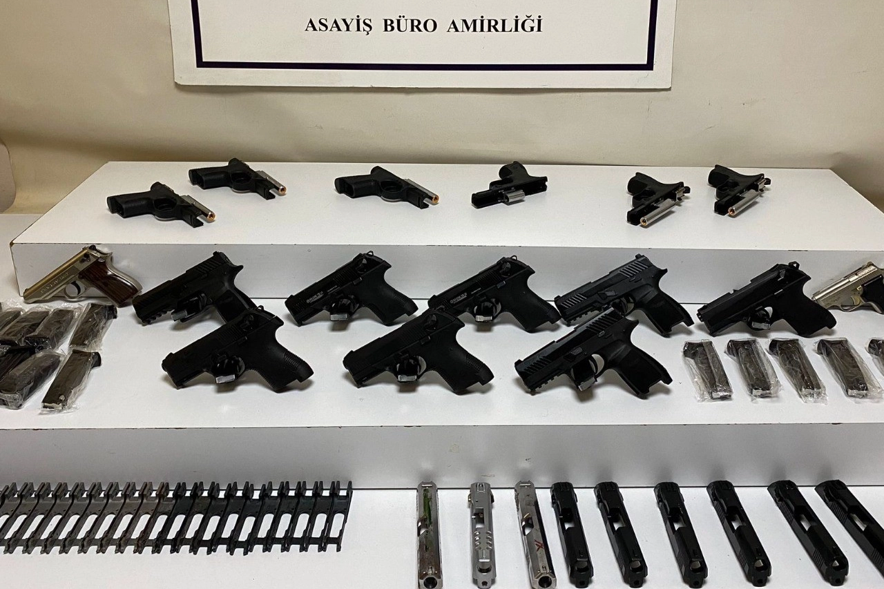 Ekipler, söz konusu şüpheli hakkında yapılan araştırmada suç unsuru silahları Huzur Mahallesinde bulunan iş yerinde sakladığını tespit etti. Belirlenen iş yerine yönelik önceki gün akşam 19.20 sıralarında operasyon gerçekleştirildi, takip altındaki şüpheli B.A. yakalanarak gözaltına alındı. Söz konusu işyerlerinde yapılan aramalarda 10 ruhsatsız tabanca, bu silahlara ait 23 şarjör, 6 tabanca gövdesi, 9 silah sürgüsü ve 26 sürgü yatağı, 7 icra mili ile 2 tetik tertibatı ile bir silah namlusu ele geçirildi.