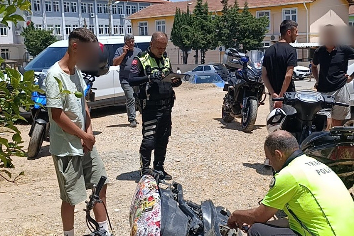 Yaşları 14 ile 15 arasında değişen motosikletli çocuklar, yazılan cezaların ardından karakola götürülürken motosikletler trafikten men edildi. Manavgat ilçesi Şelale Mahallesi 3519 sokak üzerinde seyir halindeki Manavgat Emniyet Müdürlüğü Asayiş Büro Amirliği ekibi, önlerinde gitmekte olan motosikletin abartılı egzoz nedeniyle çevreyi rahatsız etmesi, plakasının görülmemesi ve kullanan sürücünün küçük yaşta olması nedeniyle motosiklet sürücüsünden durmasını istedi.