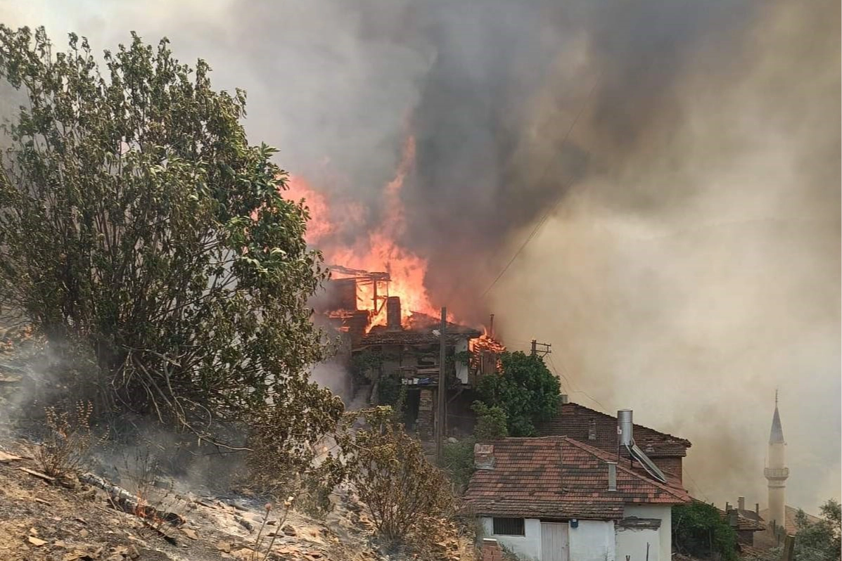 İzmir'in Ödemiş ilçesinde dün akşam başlayan orman yangınına müdahale devam ederken, alevlerin sardığı bir köyde bazı evler yandı. Boşaltılan Suçıktı Mahallesi'nde yanan evlerden birinde yatalak yaşlı adam ölü bulundu.