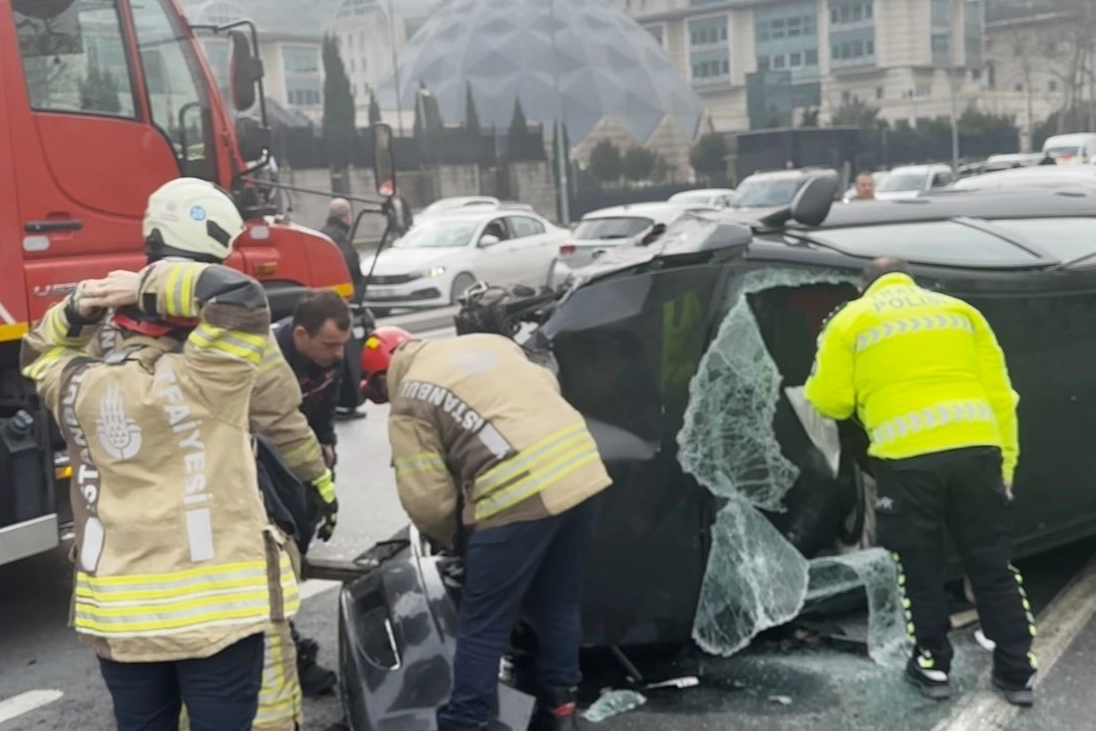 Kağıthane'de fenalaşan sürücü, aracının direksiyon hakimiyetini kaybedince yol kenarındaki direğe çarpıp yan yattı.