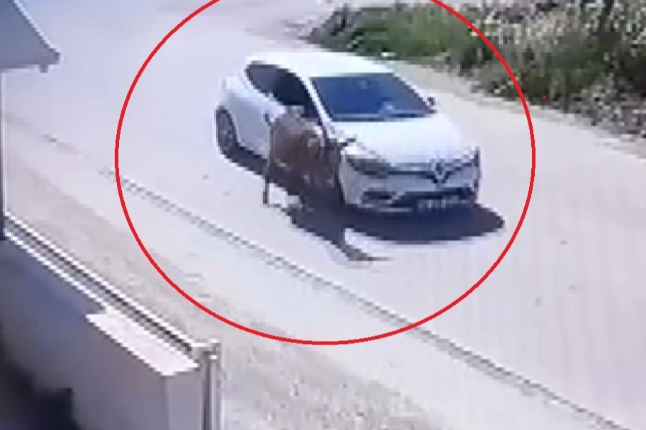Hatay'da yol ortasındaki eşeği otomobilin ezdiği anlar güvenlik kamerasına yansıdı.