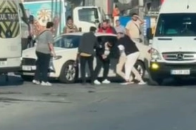 Bağcılar’da yol vermeme nedeniyle kavga eden şahıslar cep telefonu ile görüntülendi.
