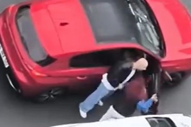 Kadınlardan biri, diğerinin arabasına girerek diğer sürücüye saldırırken, olayı gören çevredeki vatandaşlar duruma müdahale etti. Öfkesini atamayan kadın, giden aracı da tekmelerken yaşanan o anlar kameraya yansıdı.