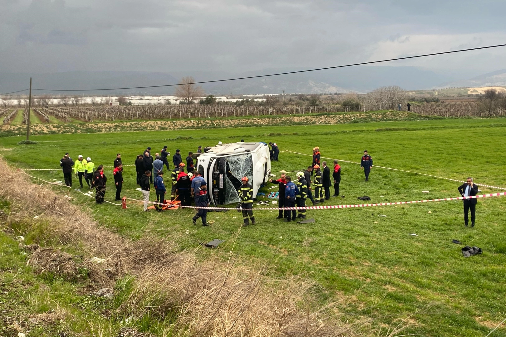 Yoldan çıkan midibüsün tarlaya uçması sonucu meydana gelen kazada 2 kişi hayatını kaybetti, 26 kişi yaralandı.