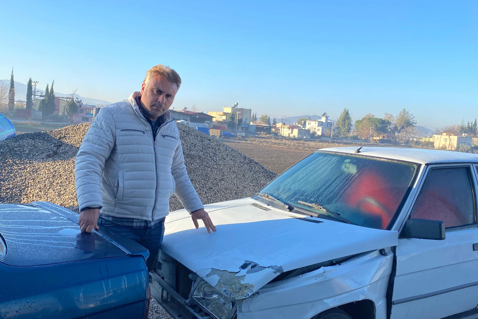 Zaten daha önce yaşadığımız deprem felaketinden dolayı bizde deprem korkusu vardı. Çok sert bir gürültü geldi, biz deprem oluyor sandık. Bir aracın kayarak araçlarımıza çarptığını gördük. Bunlar kampanyalı araçlarımızdı vatandaşa hizmet için. 5 aracımız zarar görmüş. Kaza yerine gittik, şoförün kapısını açtık, sıkıntı yoktu. Biz sorduk 'İyi misin?' diye, çok şükür şoförde bir şey yok. Bizim 5 aracımız onu bir nevi kurtarmış, arkası uçurumdu. Arka taraf uçurum, düşseydi belki de canına mal olacaktı. Çok şükür en azından araçlarımız onu korudu. Biz maddi zarar görsek de benim araçlarım o adamın canını kurtardığı için ona seviniyoruz. Yani en azından can kaybımız olmadı çok şükür. Maddi hasar olsa da sıkıntı değil, yapılır, mal yerine gelir" dedi.