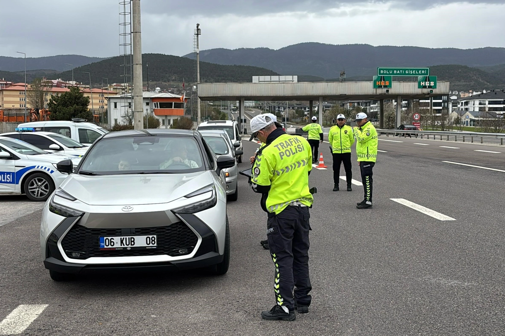 Bolu geçişinde Bolu İl Emniyet Müdürlüğü Trafik Tescil ve Denetleme Şube Müdürlüğü ile Bölge Trafik Denetleme Şube Müdürlüğü ekipleri, şehrin farklı noktalarında denetimlerini sürdürüyor. Ekipler tarafından tek tek denetlenen sürücüler, yolda giderken uykusuzluk ve telefonla oynamamaları konularında uyarıldı.