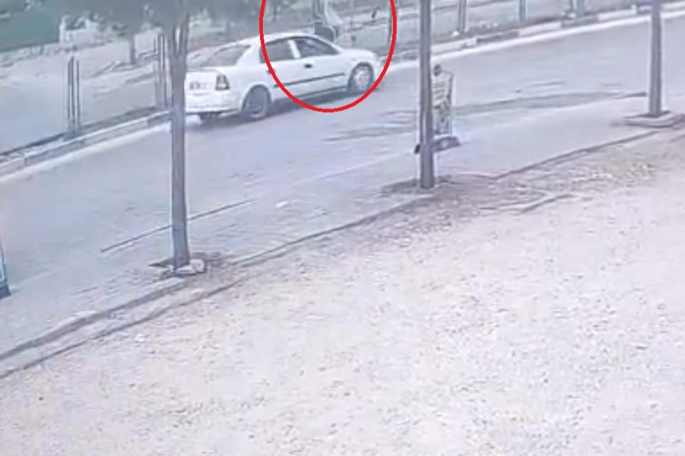 Diyarbakır'ın Ergani ilçesinde hızla yolun karşısına geçmeye çalışan yayaya otomobilin çarpma anı güvenlik kamerasına yansıdı.