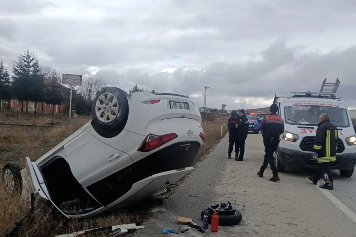 Yozgat'ta meydana gelen trafik kazasında otomobil ters döndü. Kazada karı koca yaralandı.