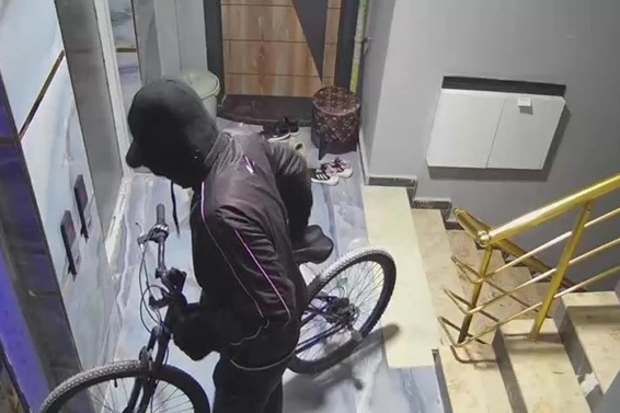 Adana'da yüzü maskeli hırsız girdiği apartmandan bisiklet çaldı.