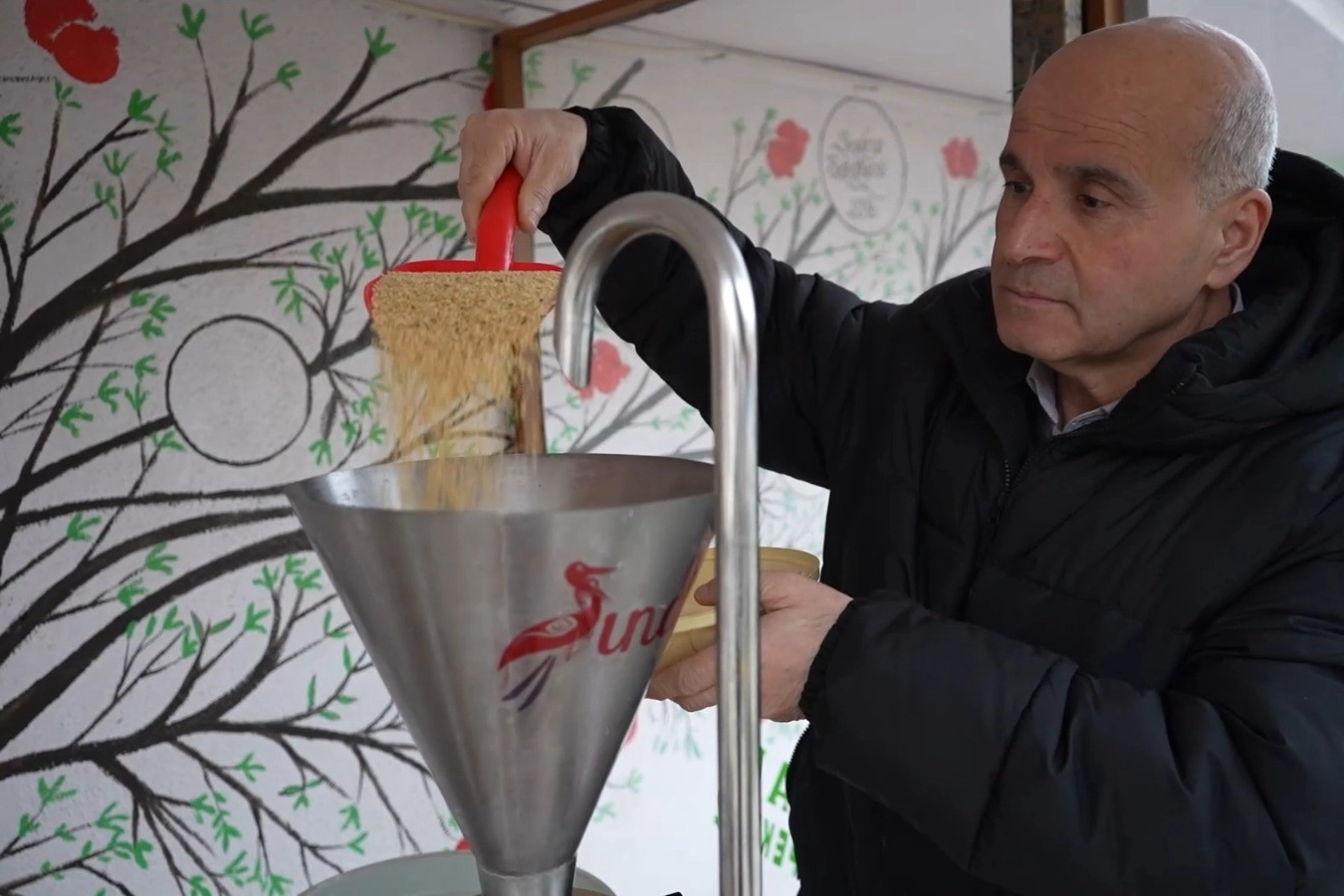 Vatandaşların son yıllarda doğal ürünlere talebinin daha çok arttığını belirten Ramazan Efe, "Ürünlerimizde hiçbir katkı kullanmıyoruz. Tamamen köylülerimizden aldığımız susamlarla müşterimizin gözü önünde tahinlerimizi hazırlıyoruz. Bu nedenle daha çok da tercih ediliyor" dedi.