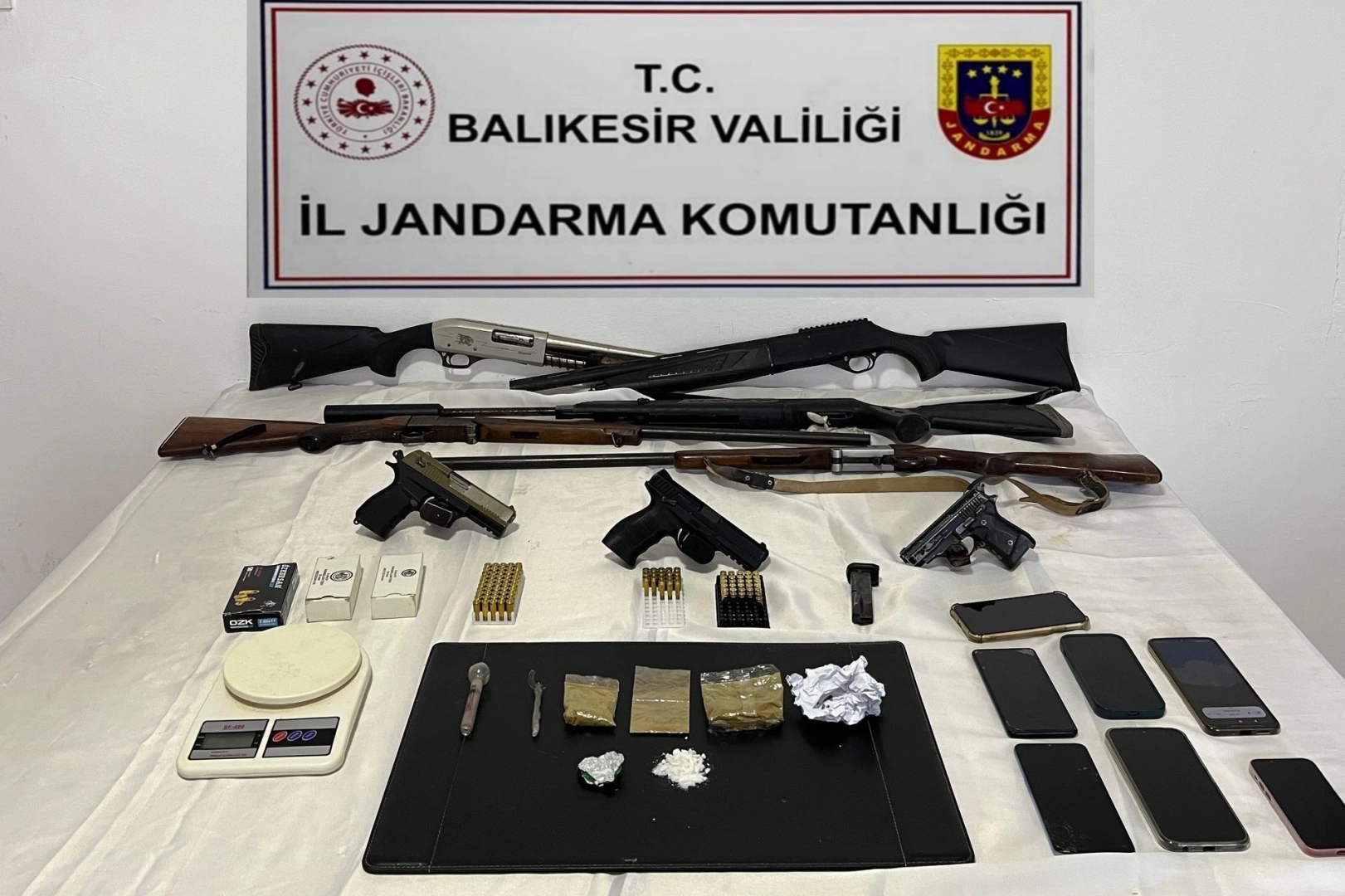 Balıkesir İl Jandarma Komutanlığı ekiplerince il genelinde düzenlenen uyuşturucu operasyonunda 17 kişi tutuklandı. Cumhuriyet Başsavcılıkları ile Narkotik Suçlarla Mücadele Daire Başkanlığı koordinesinde yürütülen çalışma kapsamında, 75 resmi ve sivil tim, 7 özel eğitimli narkotik ve bomba arama köpeği ile 4 jandarma komando timinin katılımıyla toplam 255 personel görev aldı. Ekiplerce 52 adrese eş zamanlı operasyon düzenlendi.