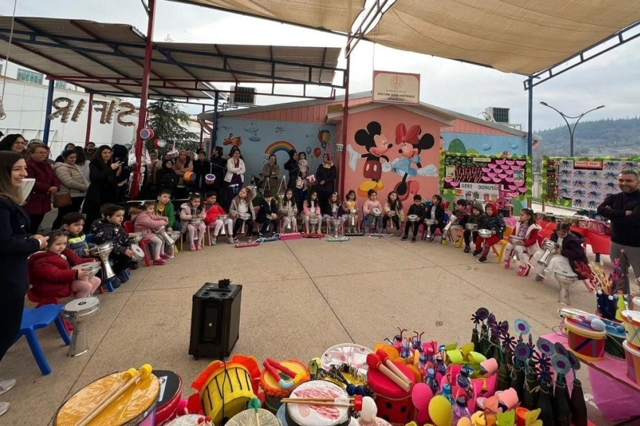 Çocuklar, sıfır atık kullanımının önemine vurgu yapmak ve çevre dostu bir yaşam tarzını benimsemek adına ortaya koydukları eserlerle dikkat çekiyor. Sergide, atık malzemelerden ürettikleri kullanışlı ürünleri büyüklerine tanıtan minikler, aynı zamanda keyifli bir ritim konseri düzenleyerek geri dönüşümü eğlenceli bir şekilde sunuyor.