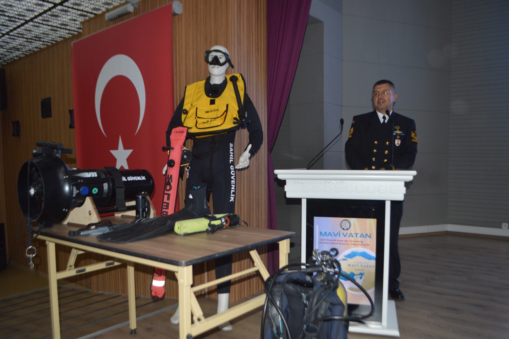 Sahil Güvenlik Kuzey Ege Komutanlığı Astsubay Kıdemli Başçavuş Volkan Kayacık tarafından verilen eğitimde; Türkiye'nin denizlerdeki stratejik konumu, sahil güvenliğinin önemi ve denizcilikte sürdürülebilirlik gibi konularındaki bilgiler öğrencilere aktarıldı.