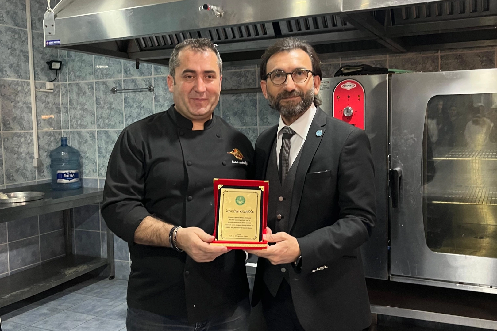 Yoğun katılımla gerçekleşen programda öğrenciler hem yapım aşamalarını yerinde gözlemleme hem de ürünleri tatma fırsatı buldu. Lezzet dolu etkinlik, eğitici yönü kadar keyifli anlara da sahne oldu. Etkinliğin sonunda Burhaniye Uygulamalı Bilimler Fakültesi Dekanı Prof. Dr. M. Oğuzhan İlban, katkılarından dolayı Erdal Aslanboğa’ya teşekkür ederek kendisine fakülte adına plaket takdim etti.