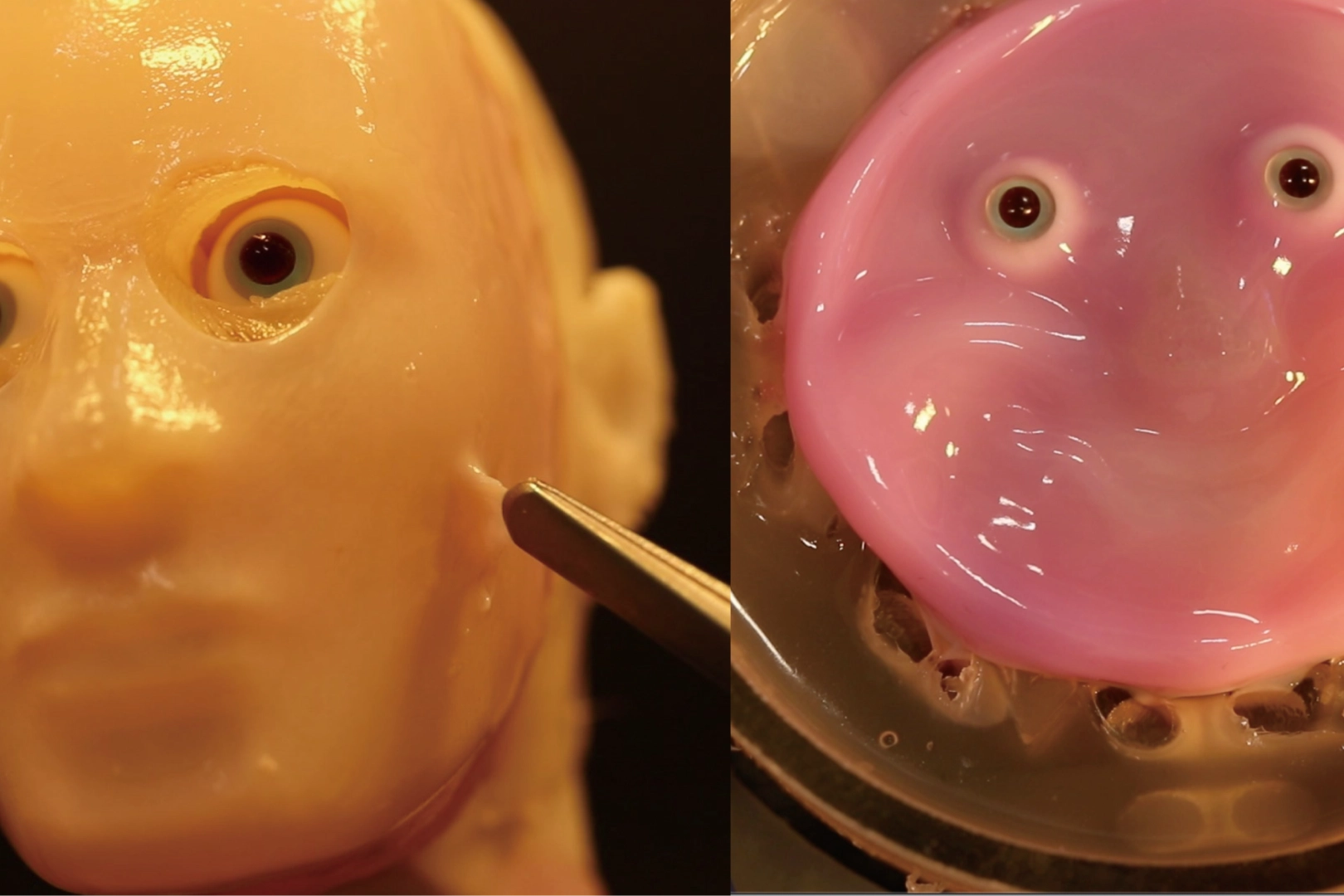 Araştırmacılar, insan derisi bağlarından ilham alarak bir robotun yüzüne deri tabakasının tutunmasına yardımcı olan özel delikler ekledi. Projeye liderlik eden Profesör Shoji Takeuchi, biyohibrit robotik alanında öncü bir isim olarak tanınıyor. Takeuchi, biyolojik kas dokusu kullanarak yürüyen mini robotlar, 3D baskılı laboratuvarda yetiştirilmiş et, iyileşebilen mühendislik ürünü deri ve daha fazlasının geliştirilmesine öncülük etti. Ancak kendisine göre, robotik cilt teknolojisi bir adım daha ileri gitmeliydi.