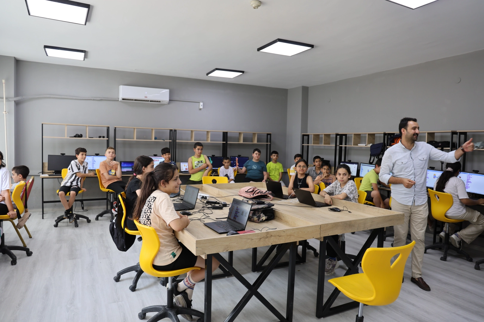 Kozan Bilim ve Sanat Merkezi (BİLSEM) Müdürü Abdullah Dağ, öğrencilere “yapay zeka” kullanımı ve etik değerler eğitimi vererek yapay zekanın doğru kullanımı noktasında ve programlama ilgili bilgiler aktardı.