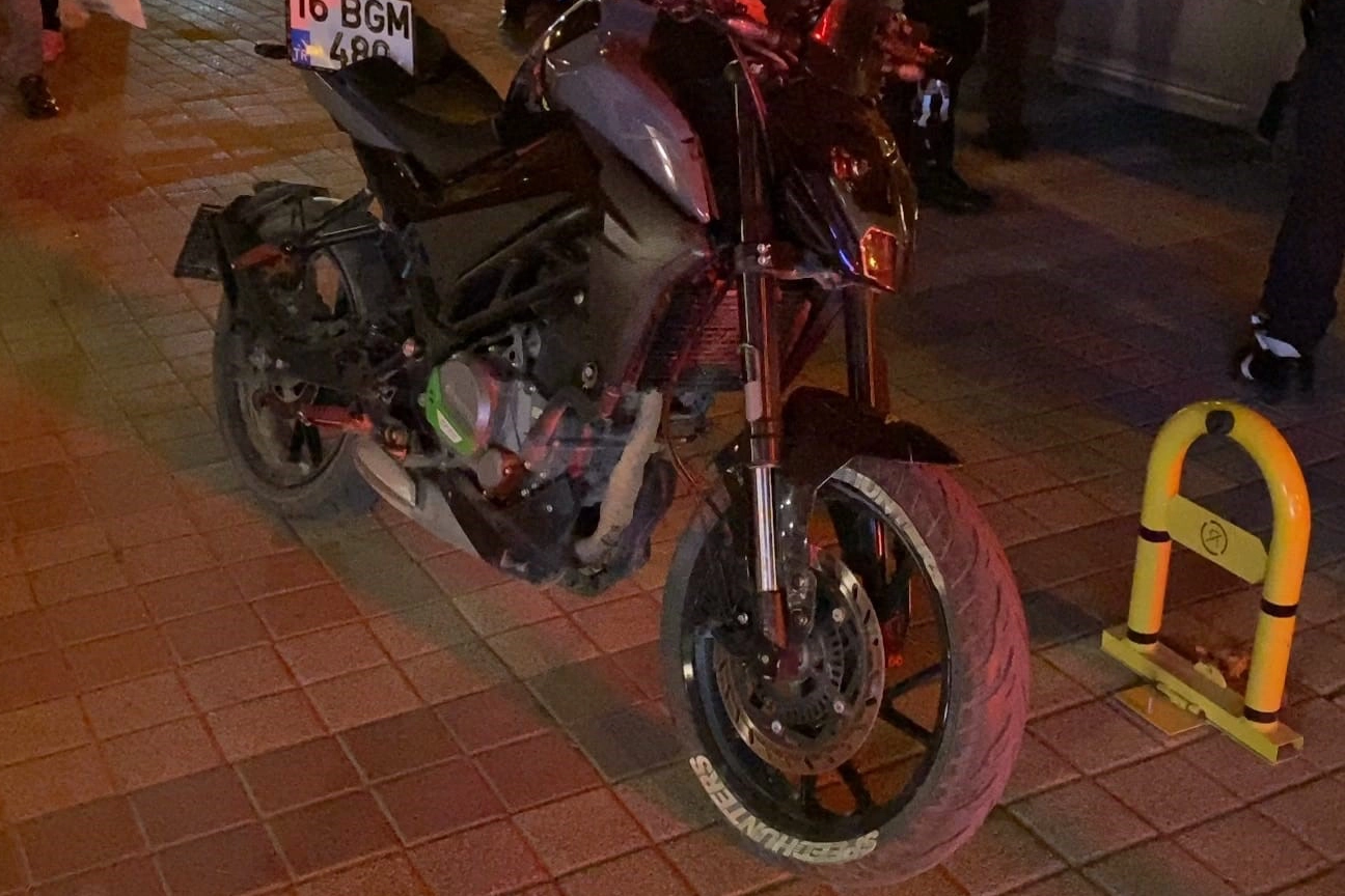 Devriye atan İnegöl Emniyet Müdürlüğü Trafik Büro Amirliği ekipleri, plakası takılı olmayan motosikletin sürücüsüne 'dur' ihtarında bulundu. Dur ihtarına uymayan sürücü hızla kaçmaya başladı. Kovalamaca sırasında motosiklet sürücüsü park halindeki 16 ADJ 594 plakalı otomobile de çarptı.