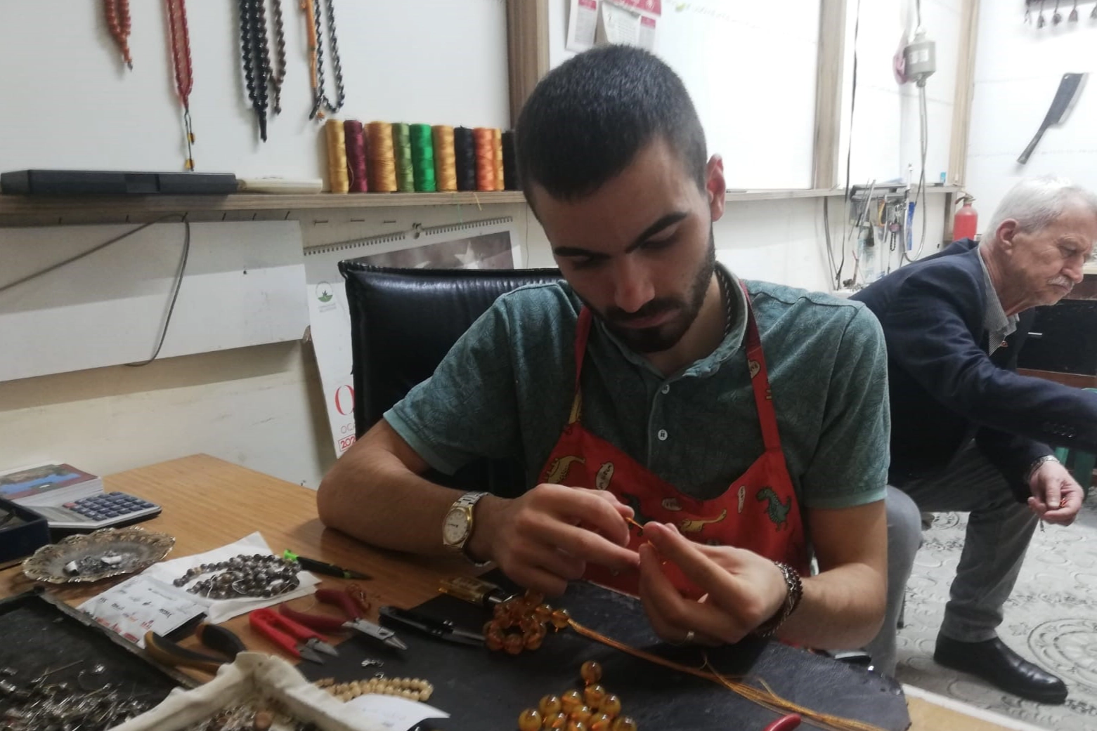 Bursa’da küçüklüğünde babasından öğrendiği tespihçilik mesleğini şimdi kendisi devam ettiren Cengiz, 1920 yılında dedeleri Ahmet Cengiz ile başlayan sanatı severek icra ediyor. Murat Cengiz, "Eskiden tespihler yay tornalar ile zorluklarla yapılırdı. Günümüzde yay tornaların yerini elektronik torna aldı. Biz ailemizde bu mesleği babadan oğula şeklinde yapıyoruz. Mesleği ailemizde ilk yapan kişi dedem Ahmet Cengiz'dir. 1920 yılında bu mesleğe başlıyor ve o günden beri babadan oğula şeklinde mesleği sürdürüyoruz" dedi. Ailenin mesleğe ilk olarak köy ortamında başladığını anlatan Murat Cengiz, "Ailemiz mesleğe ilk köy ortamında başladığı için pek fazla ilerleyemedik. Babamın mesleği daha ileri boyutlara taşımak için uğraşlarında 15 yıl boyunca Türkiye turu yaptık. Son durağımız olan Bursa’ya yerleştik. İlk başta toptan satışlar yapardık. Ardından perakende satışlara geçtik. Daha sonra ben de dede mesleğini devam ettirmek için atölyemi açtım. Burada tespih tamirlerini ve bakımlarını yapıyorum. Kısacası ben de mesleğimizin öncüsü Ahmet dedemiz gibi mesleği devam ettirmeye çalışıyorum" ifadelerini kullandı.