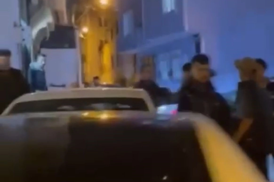 Gruplar arasında çıkan sözlü tartışma, kısa sürede kavgaya döndü. Sokağın resmen boks ringine döndüğü kavga, saniye saniye amatör kamera ile kaydedildi.