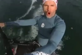 Bursa'nın İznik ilçesinde bir grup yeni yılın ilk sabahı buz gibi gölde yelken sörfü yapıp metrelerce yüzdü.