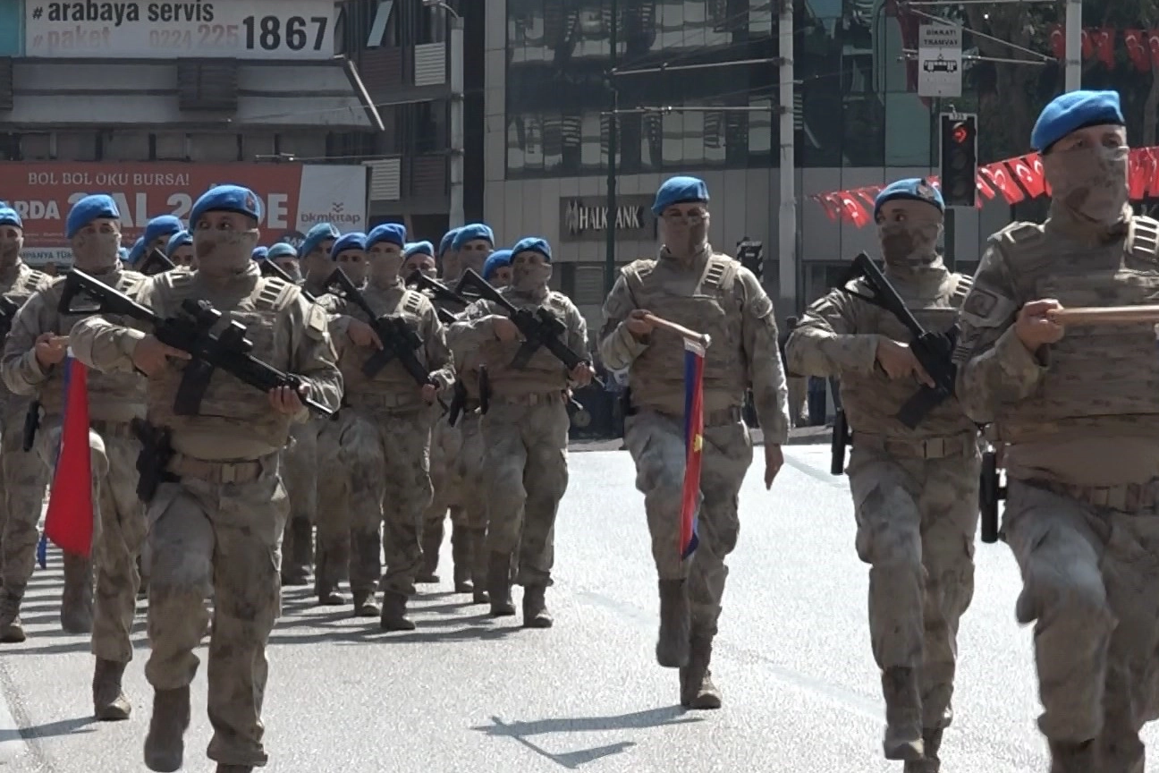 Ardından üstü açık araçla vatandaşların bayramını kutladı. Selamlama sonrası Osmangazi, Yıldırım, Nilüfer belediyeleri folklor ekipleri gösterilerini sundu. Program, günün anlam ve önemini anlatan konuşma ve şiirin ardından resmi geçitle devam etti. TOMA'dan atlı birliklere, köpekli ekiplerden jandarma helikopterine kadar resmi geçit herkesin göğsünü kabarttı. Törene damgasını vuran ise, akülü motoruyla askerlerin arasında geçide dahil olan çocuk oldu. Ayağa kalkarak protokolü selamlayan çocuk, vatandaşların büyük beğenisini kazandı. Bayraklar ve marşlar eşliğinde törenlere eşlik eden vatandaşlar, zafer coşkusunu hep birlikte yaşadı.