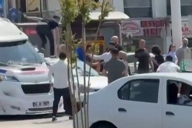Yaklaşık 5 saniye için dakikalarca bir birine yumruk sallayan sürücüleri, kimse engel olamadı. Yaşanan kavga anı ise bir vatandaşın cep telefonu kamerasına saniye saniye yansıdı.