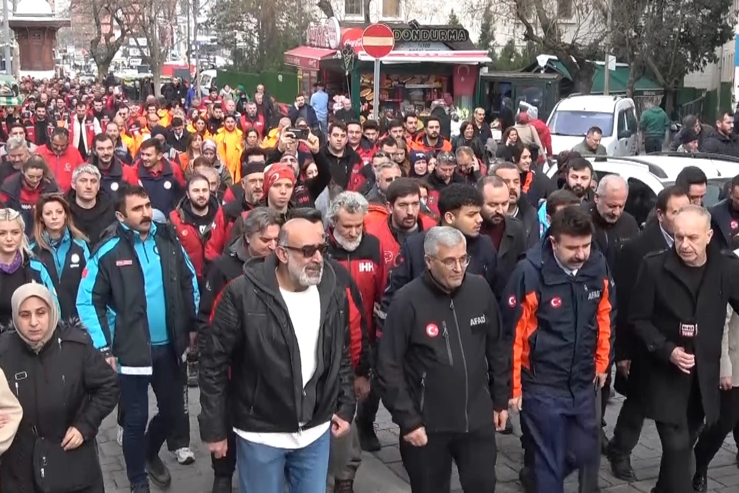 Yüzlerce arama kurtarma personeli, ellerinde Türk bayraklarıyla ve sessiz şekilde Ulu Cami’ye yürüdü. Ulu Cami’de Kur’an-ı Kerim tilaveti yapıldı, ardından depremde yaşamını yitirenler için dualar edildi. Anma programı, kılınan cuma namazıyla devam etti.