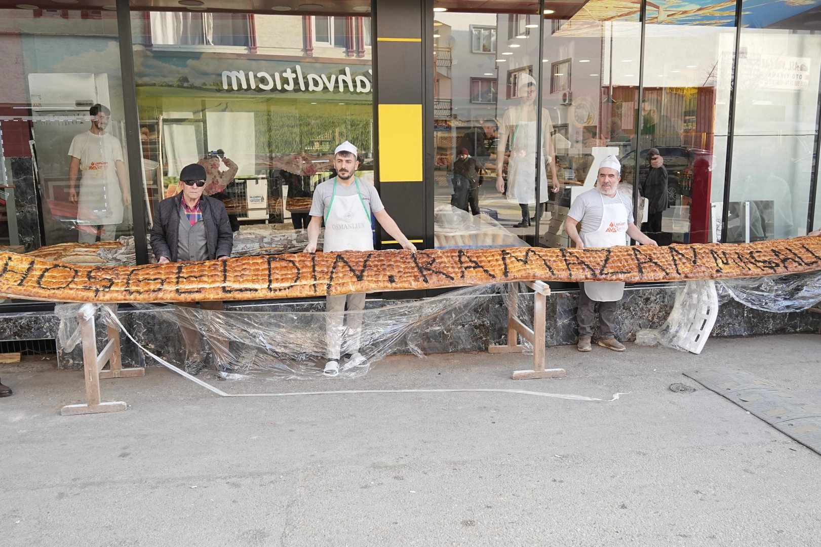 Bursa'da 20 yıldır fırıncılık yapan Subay Özçelik, Ramazan ayının ilk gününde 7 metrelik pide yaptı.