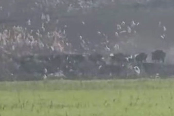 Diyarbakır'ın Çınar ilçesinde aç kalan domuz sürüsü tarlada yiyeyek ararken görüntülendi.