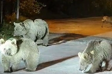 Tedirgin etmemek adına ayılara yaklaşmayan grup üyeleri, yanlarında getirdikleri yiyecekleri uzaktan bırakarak hayvanların dikkatini dağıttı. Bu sırada çevre köylerden gelen çoban köpekleri ayılara havlasa da, ayılar hiç oralı olmadan yemeklerini yemeye devam etti.