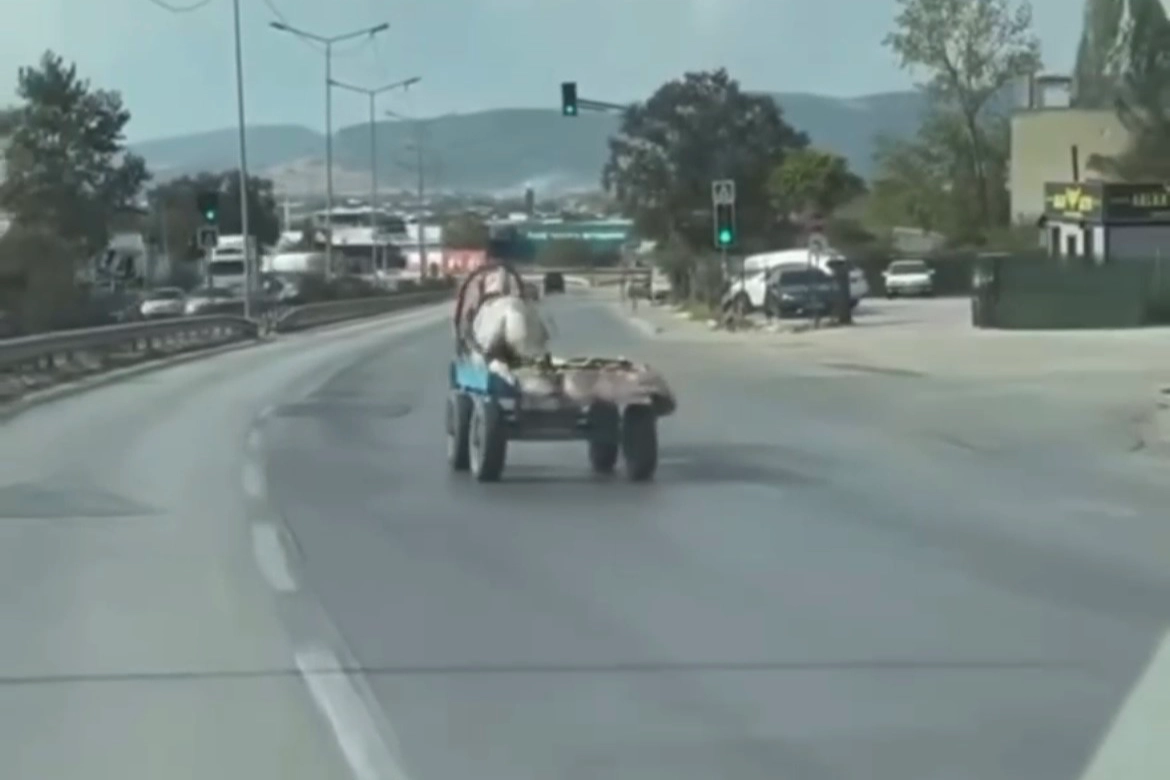 Bursa’da seyir halindeki başıboş at arabası tehlike saçtı.