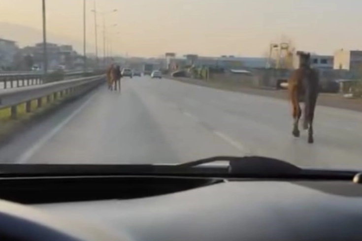 3 şeritli yolu işgal eden atlar trafiği tehlikeye düşürürken, kontrollü ilerleyen sürücüler kazaya karışmadı. Atların şeritleri işgal ettiği anlar kameraya yansırken, vatandaşlar kaza riskiyle karşı karşıya olduğunu belirterek yetkilerden yardım istedi. Bir süre anayolda ilerleyen atlar ise boş bir araziye girerek gözden kayboldu.