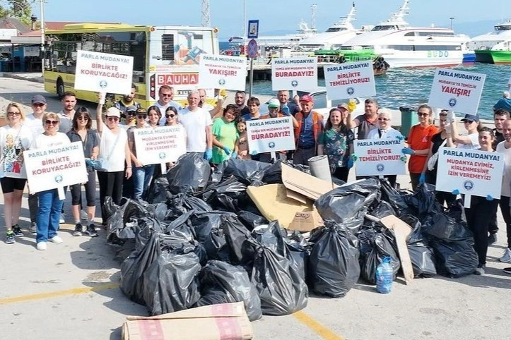 Mudanya Belediye Başkanı Deniz Dalgıç ve belediyede çalışanları, yaptıkları sahil temizliğinin ardından çekindikleri fotoğraf karesi, insan eliyle kirletilen sahillerin bir günlük çöp bilançosunu gözler önüne serdi.