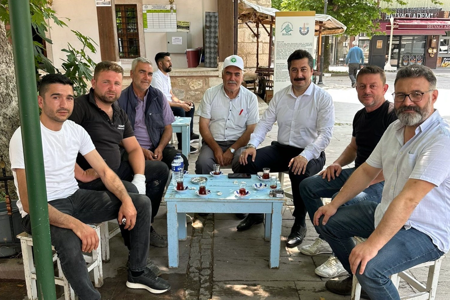Çınarlı Cami Bahçesi’nde gerçekleşen buluşmada, Karacaahmet Muhtarı ile birlikte mahalle sakinleriyle bayramlaştı, çay eşliğinde samimi bir sohbet gerçekleştirdi.