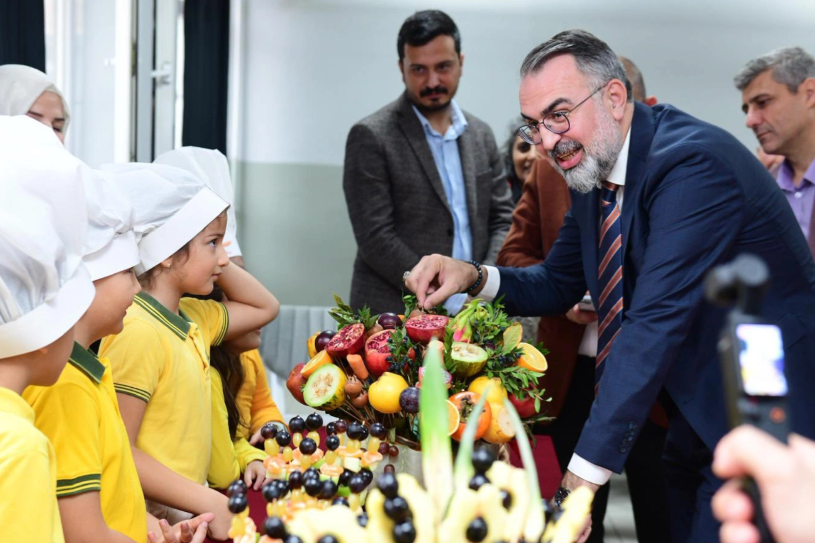 Kahvaltının ardından Başkan Erol, “Sağlıklı Beslenme Yolculuğum Projesi” kapsamında gerçekleştirilen Meyve Günü Şenliğine katıldı. Etkinlikte öğrencilerin büyük bir emekle hazırladığı sağlıklı atıştırmalıkları tadan ve miniklerin sergilediği gösterileri izleyen Erol, çocukların enerjisi ve heyecanının kendilerini mutlu ettiğini ifade etti.