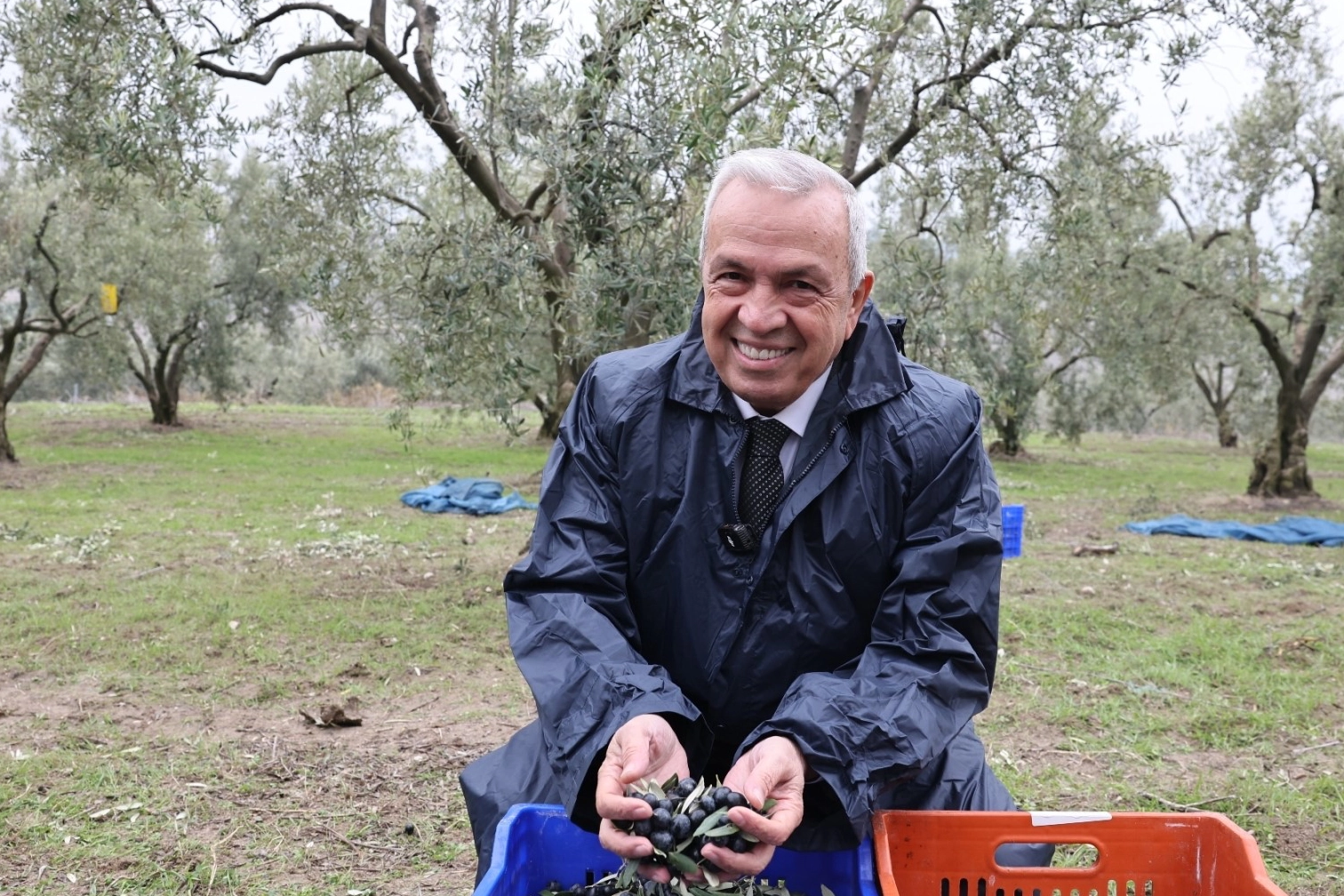 Nilüfer Belediye Başkanı Şadi Özdemir Konaklı Mahallesi’nde Nilüfer Belediyesi’ne ait arazideki zeytin hasadına katıldı.