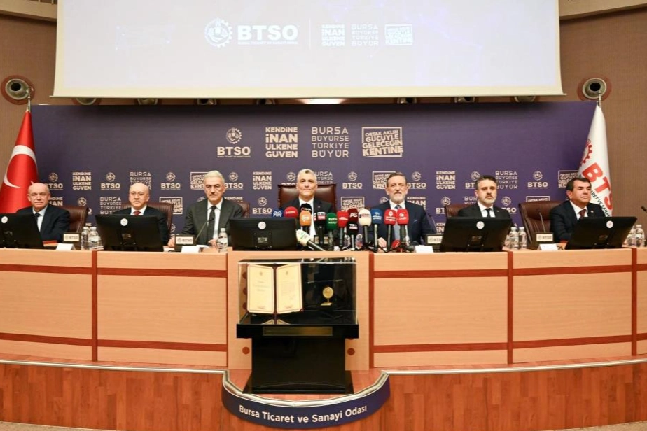 Bursa Ticaret ve Sanayi Odası (BTSO) Nisan Ayı Meclis Toplantısı, BTSO Ana Hizmet Binası’nda gerçekleşti. Toplantının ardından Ticaret Bakanı Prof. Dr. Ömer Bolat, Bursa Valisi Erol Ayyıldız, Bursa Büyükşehir Belediyesi Başkan Vekili Şahin Biba ve BTSO Yönetim Kurulu Başkanı İbrahim Burkay, iş dünyası temsilcileriyle bir araya geldi. Bursa’nın üretim, ticaret ve ihracattaki faaliyetlerinin değerlendirildiği toplantıda, şehri daha ileri taşımak amacıyla istişarelerde bulunuldu. Bursa ekonomisine yön veren sanayici ve iş insanlarına hitap eden Bakan Ömer Bolat, gerçekleştirdiği sunumda; küresel, ulusal ve bölgesel ölçekte örnekler eşliğinde Türkiye’nin ticaret vizyonunu, Ticaret Bakanlığı’nın yürüttüğü faaliyetleri ve geleceğe yönelik potansiyel alanları kapsamlı şekilde değerlendirdi. Bursa’nın üretim gücüyle Türkiye ekonomisinin lokomotif şehirlerinden olduğunu vurgulayan Bakan Bolat, Bursa’nın ihracatının 2025 yılında yüzde 10 artış göstererek 20 milyar dolara ulaştığını, 2026 yılının ilk üç ayında da artış eğiliminin devam ettiğini söyledi. Bursa ekonomisine sağlanan destek ve hibeler hakkında da değerlendirmelerde bulunan Ömer Bolat, kentte 88 bin esnaf ile yaklaşık 100 esnaf ve sanatkâr odasının faaliyet gösterdiğini belirterek, ziyaretleri kapsamında TESKOMB kefaleti ve Halkbank kaynaklarıyla 200 milyon TL tutarında esnaf destek kredisinin hayata geçirileceğini açıkladı.