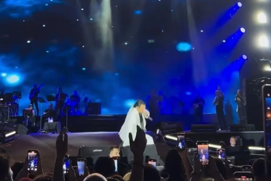 Şarkı söylediği esnada dengesini kaybeden Bayhan, sahnede yere düştü. O anlar saniye saniye kameralara yansıdı.