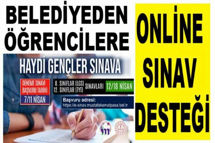 Haziran ayında yapılacak LGS ve TYT sınavları için İlçe Millî Eğitim Müdürlüğü iş birliği ile başlatılan eğitime destek projesiyle öğrenciler hem sınav heyecanını yenecek hem de bilgilerini test etme imkânı bulacak. Online sınavlarla kendilerini deneme imkânı bulacak öğrenciler, 07 - 11 Nisan tarihleri arasında https://e-sinav.mustafakemalpasa.bel.tr/ adresinde yer alan formu doldurarak kayıt olabilecek. 8. Sınıflar için (LGS) deneme sınavı 12 Nisan’da, 12. Sınıflar için (TYT) deneme sınavı 18 Nisan tarihinde online ve ücretsiz olarak yapılacak. Mustafakemalpaşa Belediye Başkanı Mehmet Kanar, “Lise ve üniversitelere hazırlanan öğrencilerin zorlu ve oldukça stresli bir süreç yaşadığını belirterek bu süreçte öğrencilerin sınav heyecanını bir nebze olsun azaltmak için online deneme sınavı gerçekleştiriyoruz. Öğrenci dostu uygulamalarımıza devam edeceğiz. Sınava girecek tüm öğrencilerimize başarılar diliyorum” dedi.