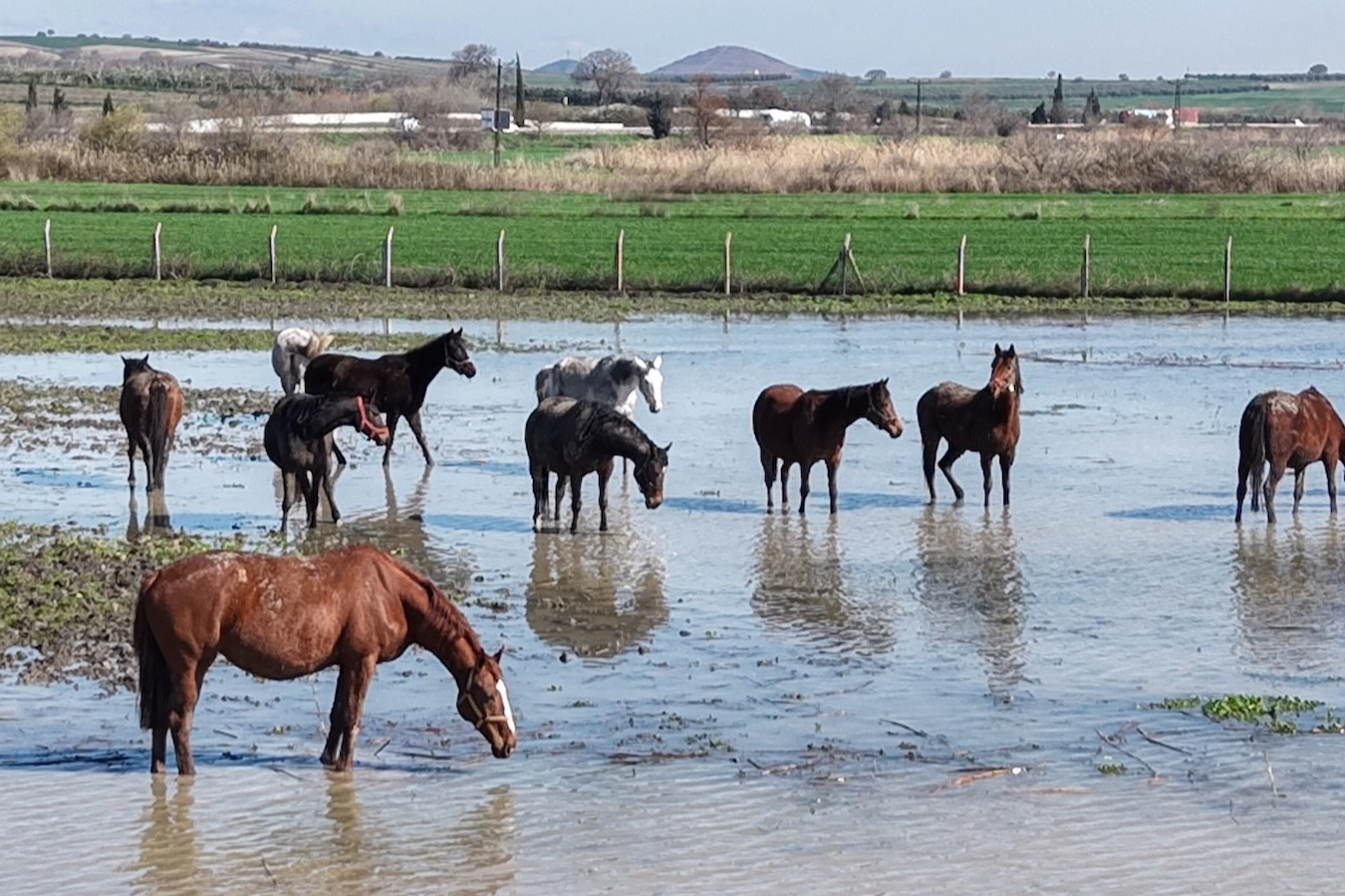 Uluabat Gölü, Bursa-İzmir kara yolunun kıyısına kadar gelirken bölgede bulunan milyonluk yarış atlarının bulunduğu tarlalar da su altında kaldı. Arap ve İngiliz yarış atları, su içinde gezinirken drone ile görüntülendi. Milyonluk tayların annesi olan damızlık atların büyük kısmının gebe olması da dikkat çekti. At çiftliğinin çalışanı Paşa Şıkıyev, 2017'den bu yana Karacabey'de tavlada çalıştığını belirterek, "Göl suları ilk kez buraya kadar geldi. Bu şekilde hiç görmemiştim. Atları sürekli ahırda tutamayız mecbur gezindikleri alana çıkardık. Orası da su altında ama yapacak bir şey yok bir süre böyle idare edeceğiz" dedi.
