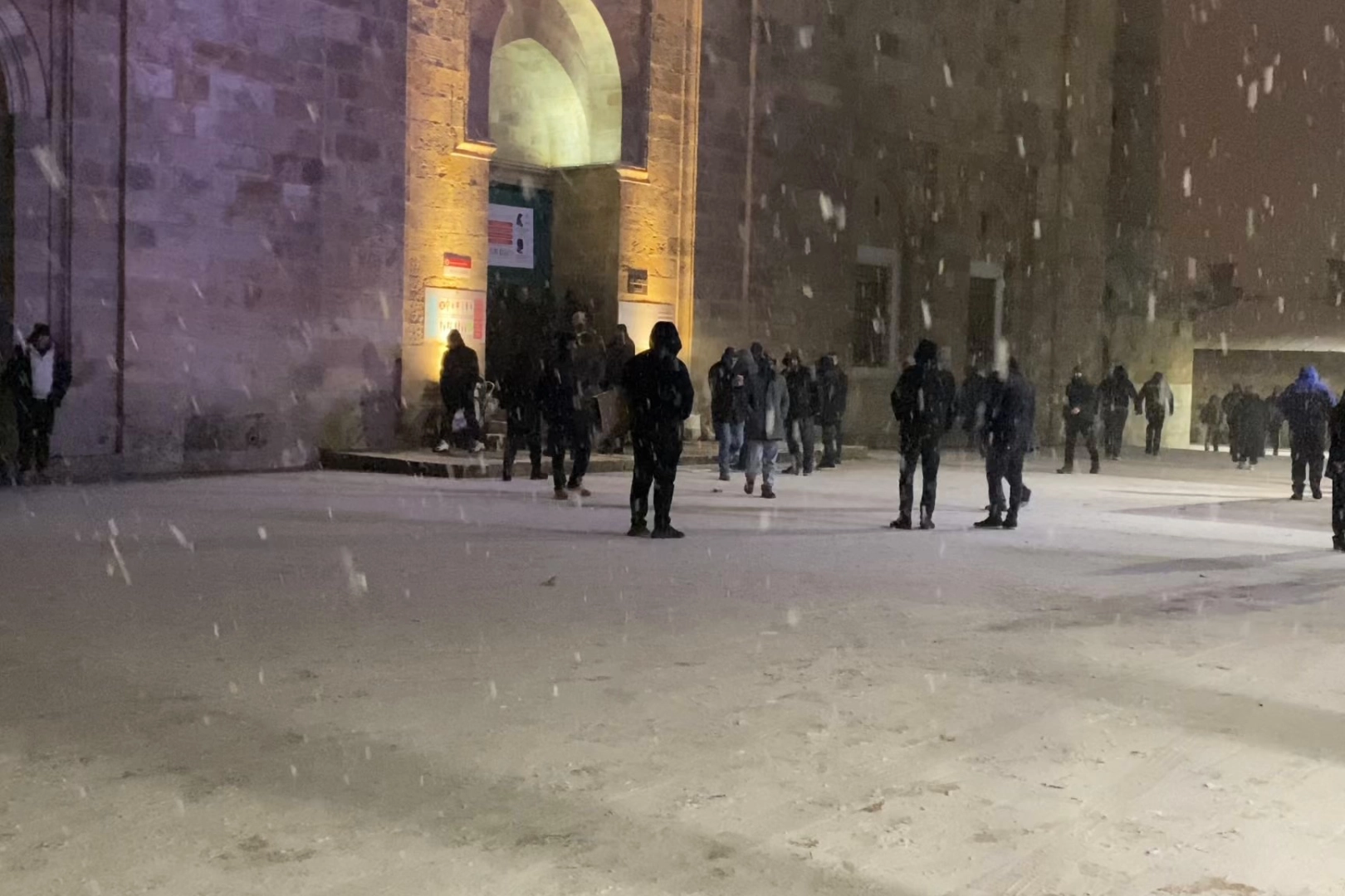 Ulucami’de yer bulamayan vatandaşlar, cami avlusunda yağan kar altında saf tutarak namazlarını eda etti. Yeni yılın ilk gününde sabahın erken saatlerinden itibaren Bursa’nın simgesi olan tarihi Ulucami dolup taştı. Yoğun katılım nedeniyle cami içerisinde yer bulamayan çok sayıda vatandaş, sabah namazını cami avlusunda ve karlar altında kıldı. Yılın ilk karıyla birlikte oluşan manzara, duygusal anlara sahne oldu.