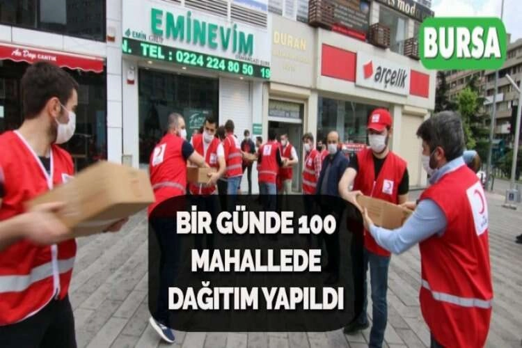 Hayırseverlerin Kızılay Osmangazi Şubesi tarafından ihtiyaç sahiplerine dağıtılmak üzere bağışlanan gıda ve hijyen kolileri ile pide ve konserveler, 18 araçtan oluşan 60 kişilik gönüllü ekibiyle; 100 mahalledeki 260 haneye ulaştırıldı.