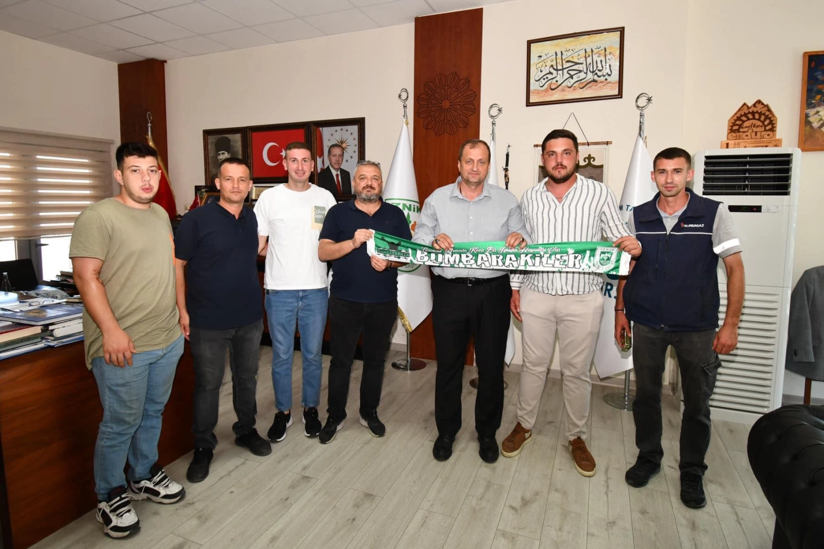 İznikspor taraftar gurubu Bombarakiler, İznik Belediye Başkanı Kağan Mehmet Usta’yı makamında ziyaret etti.