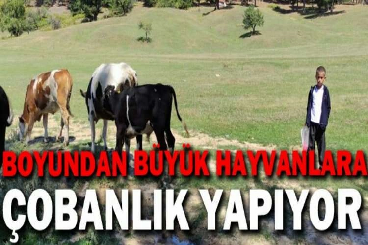Keles ilçesi Gelemiç köyünde yaşayan Yusuf Onur Aslan, (9) okulların tatile girmesiyle birlikte ailesine yardım etmek için çobanlık yapıyor. Ailesinin çoban olması sebebiyle hayvanların içinde büyüyen minik çocuk Keles Kocayayla'da yaz döneminde tek başına boyundan büyük ineklere çobanlık yaparak gören herkesi kendine hayran bırakıyor. Kendinden kat kat büyük ineklerin peşinde koşarak onları ustaca yönlendiren minik çoban aynı zamanda kitap okumayı da ihmal etmiyor. Küçük çocuğun kendinden büyük ineklere ustaca çobanlık yaptığın görenler büyük şaşkınlık yaşıyor. 2 yıldır çobanlık yaptığını ifade eden Yusuf Onur Aslan, "Tatilde çobanlık yapıyorum. Tek başıma ineklerin peşinde sabahtan akşama kadar koşturuyorum. İnekler benden büyük ama onlardan korkmuyorum. Biz Gelemiç köyünden her yaz Kocayayla'ya geliyoruz. Ben de tatil döneminde çobanlık yapıyorum. Çobanlık yaparken kitap okumayı ihmal etmiyorum" dedi.